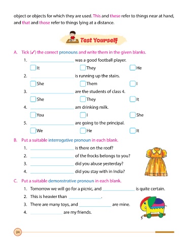 A. Tick (3) the correct pronouns and write them in the given blanks.
