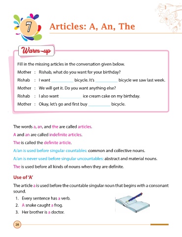 Rishab : I want __________ bicycle. It’s __________ bicycle we saw last week.