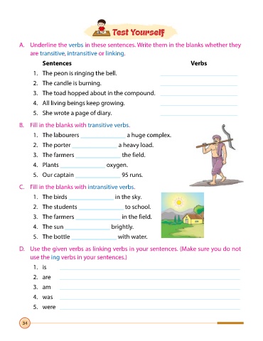 A. Underline the verbs in these sentences. Write them in the blanks whether they