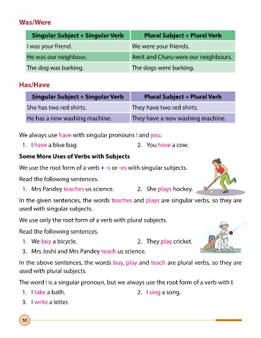 Singular Subject + Singular Verb Plural Subject + Plural Verb