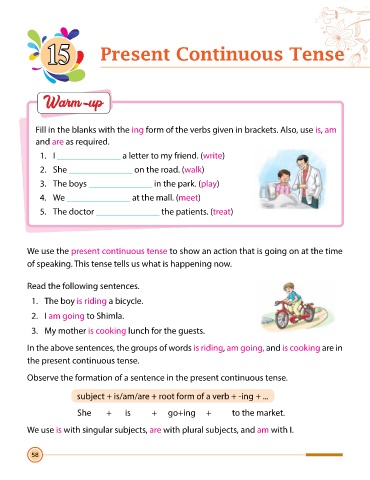 Fill in the blanks with the ing form of the verbs given in brackets. Also, use is, am