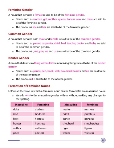 A noun that denotes a female is said to be of the feminine gender.