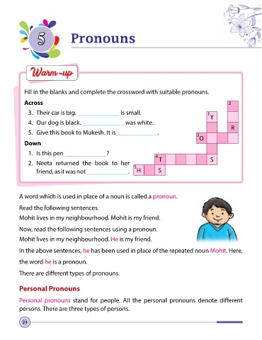 Fill in the blanks and complete the crossword with suitable pronouns.