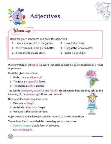 Adjectives change in form (rich, richer, richest) to show comparison.