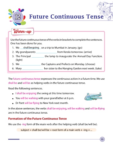 In the above sentences, the verbs shall be enjoying, will be walking and will be flying