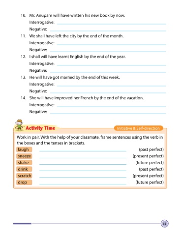 Work in pair. With the help of your classmate, frame sentences using the verb in
