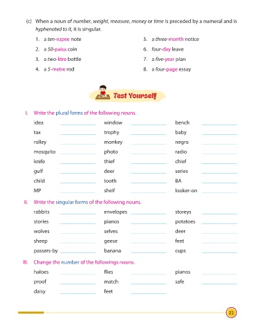 (c) When a noun of number, weight, measure, money or time is preceded by a numeral and is