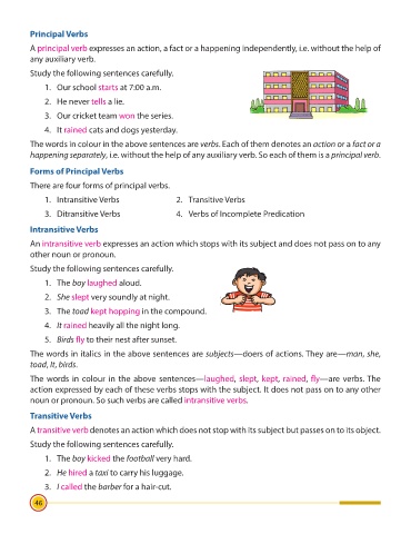 A principal verb expresses an action, a fact or a happening independently, i.e. without the help of