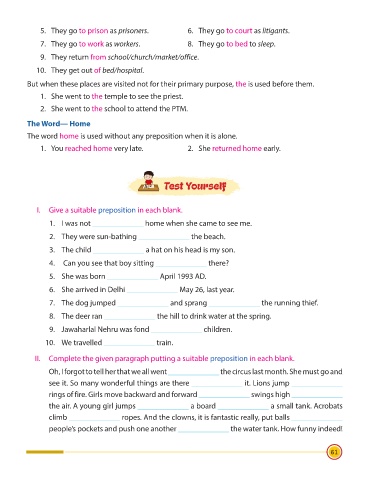 II. Complete the given paragraph putting a suitable preposition in each blank.
