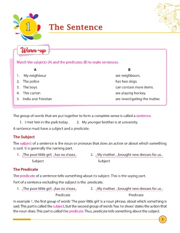 the noun does. This part is called the predicate. Thus, predicate tells something about the subject.