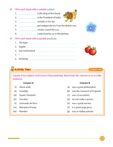 Column A has subjects and Column B has predicates. Match both the columns so as to make