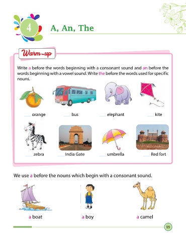 words beginning with a vowel sound. Write the before the words used for specific