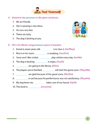 1. Kamal is seven years old. __________ is in class 2. (He/They)