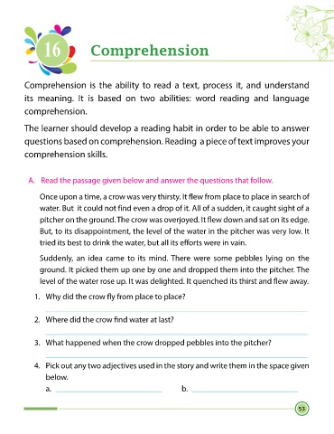 level of the water rose up. It was delighted. It quenched its thirst and flew away.