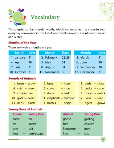 13. hens – cluck 14. horses – neigh 15. tigers – growl