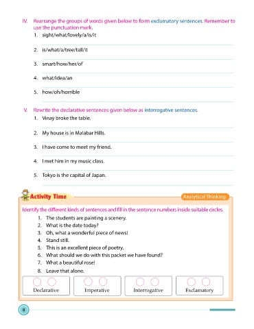 Identify the different kinds of sentences and fill in the sentence numbers inside suitable circles.