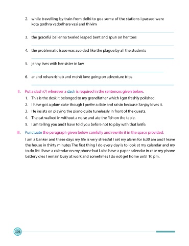 II. Put a slash (/) wherever a dash is required in the sentences given below.