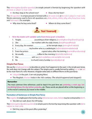 the verb does not change with the subject. The simple past is usually formed by adding -d, -ed or -ied