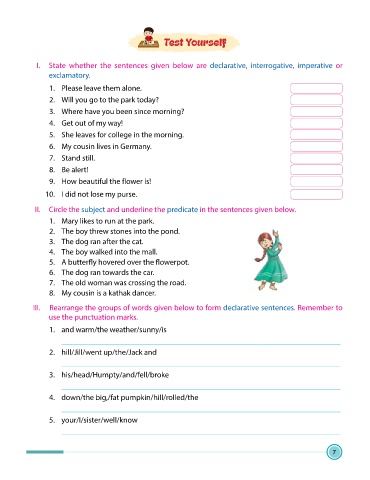III. Rearrange the groups of words given below to form declarative sentences. Remember to
