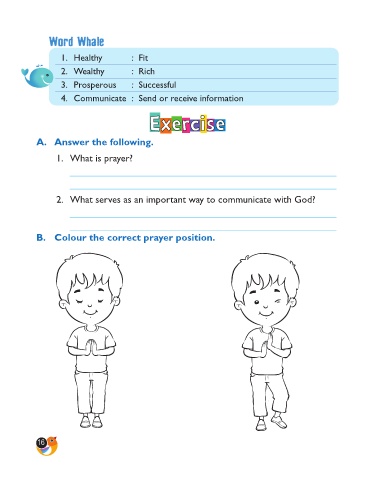 B. Colour the correct prayer position.