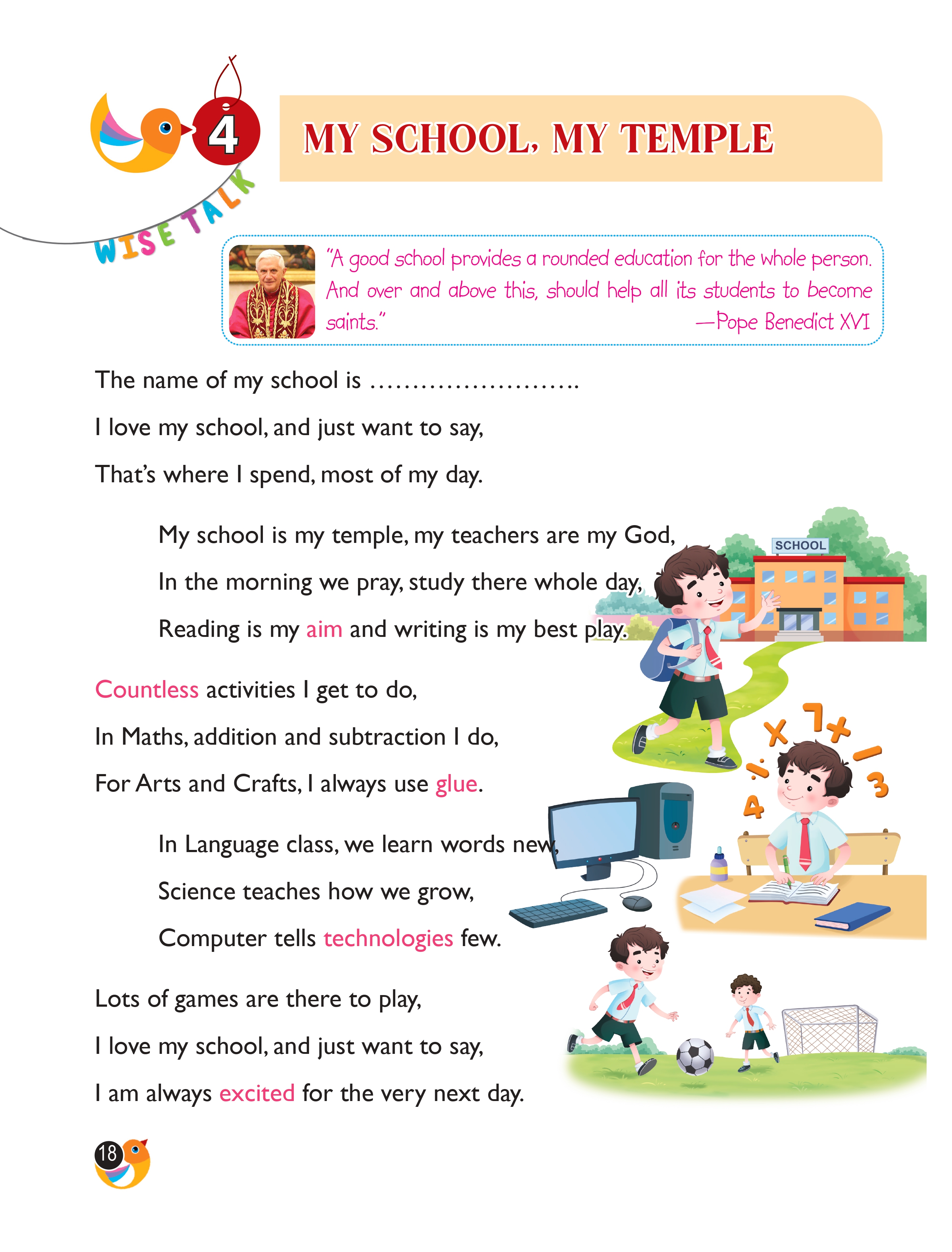 In Language class, we learn words new,