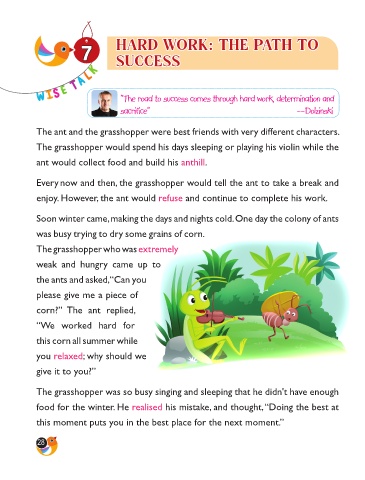 enjoy. However, the ant would refuse and continue to complete his work.