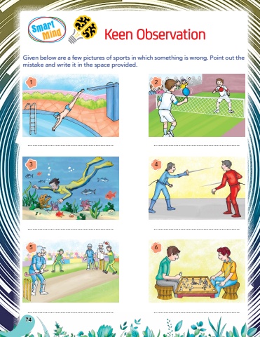 SmartMindKeen Observation........................................................................................................................................................................................................................................................................................................................Given below are a few pictures of sports in which something is wrong. Point out the mistake and write it in the space provided.13524674