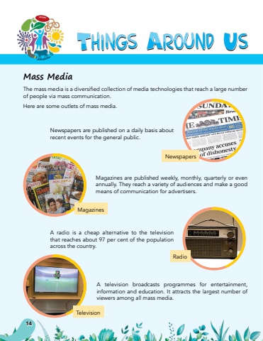 14Mass MediaThemassmediaisadiversifiedcollectionofmediatechnologiesthatreachalargenumberof people via mass communication.Here are some outlets of mass media.Newspapers are published on a daily basis about recent events for the general public.A radio is a cheap alternative to the television that reaches about 97 per cent of the population across the country.Magazines are published weekly, monthly, quarterly or even annually. They reach a variety of audiences and make a good means of communication for advertisers.A television broadcasts programmes for entertainment, information and education. It attracts the largest number of viewers among all mass media.NewspapersRadioMagazinesTelevision