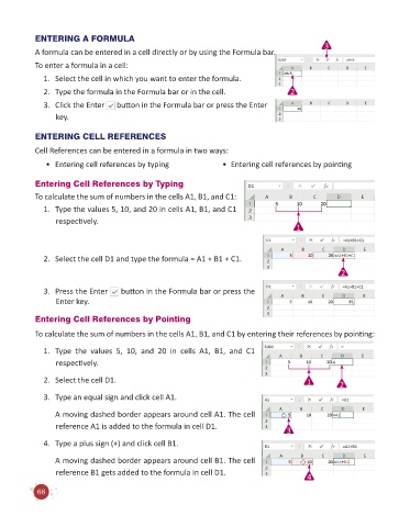 A formula can be entered in a cell directly or by using the Formula bar. 3