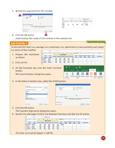 6. Specify the cell range C3:G3 in the Number1 text box and click the OK button.