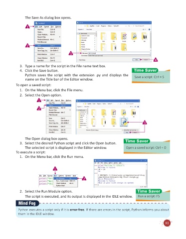 Python saves the script with the extension .py and displays the Save a script: Ctrl + S