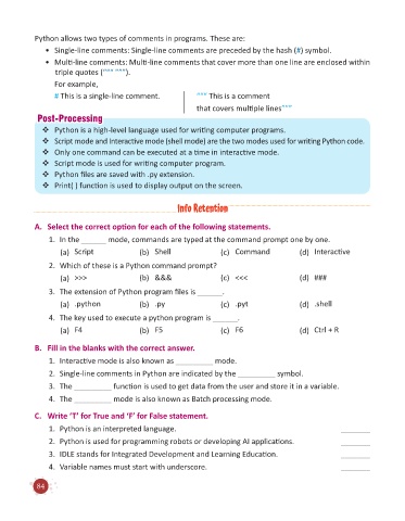 Python allows two types of comments in programs. These are: