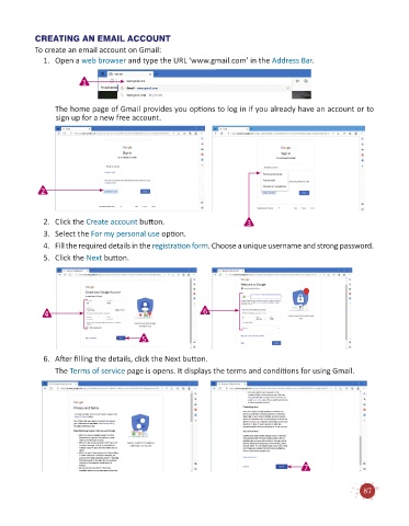 1. Open a web browser and type the URL ‘www.gmail.com’ in the Address Bar.