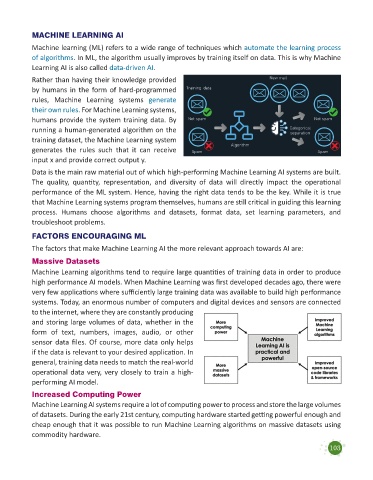 of algorithms. In ML, the algorithm usually improves by training itself on data. This is why Machine