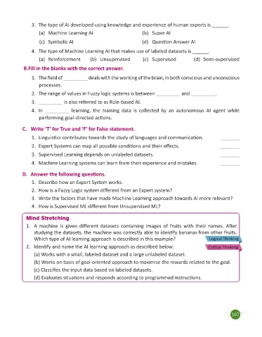 2. Identify and name the AI learning approach as described below: Critical Thinking