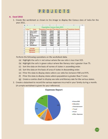 1. Create the worksheet as shown in the image to display the Census data of India for the