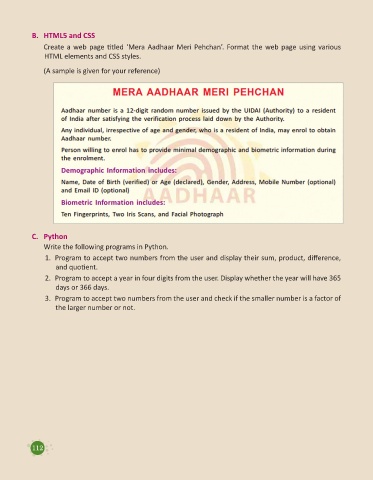 Create a web page titled ‘Mera Aadhaar Meri Pehchan’. Format the web page using various