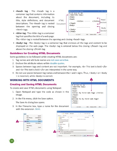 displayed on the web page. The <body> tag is entered below the closing </head> tag and