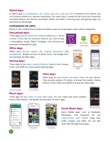 accessed without an Internet connection. Music and video streaming apps and gaming apps are