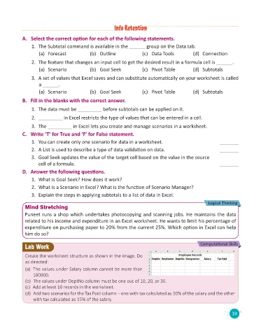 1. You can create only one scenario for data in a worksheet. _______