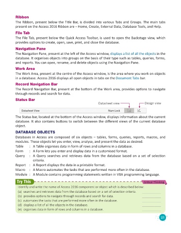 database. It organises objects into groups on the basis of their type such as tables, queries, forms,