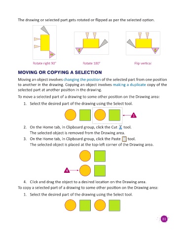 The drawing or selected part gets rotated or flipped as per the selected option.