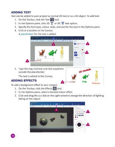 Text can be added to your project as normal 2D text or as a 3D object. To add text:
