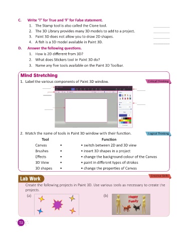 2. Match the name of tools in Paint 3D window with their function. Logical Thinking
