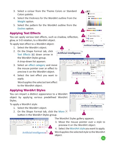 glow, or 3-D rotation, to a WordArt object. 5