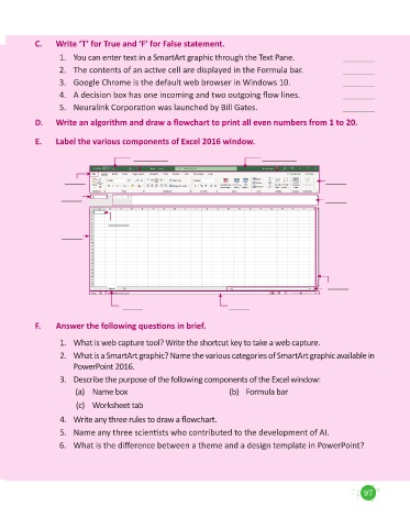 E. Label the various components of Excel 2016 window.