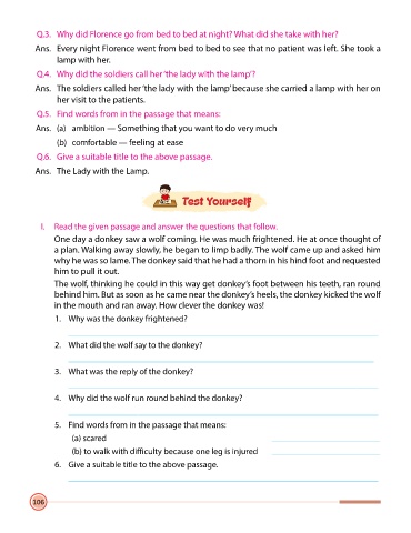 Ans. The soldiers called her ‘the lady with the lamp’ because she carried a lamp with her on
