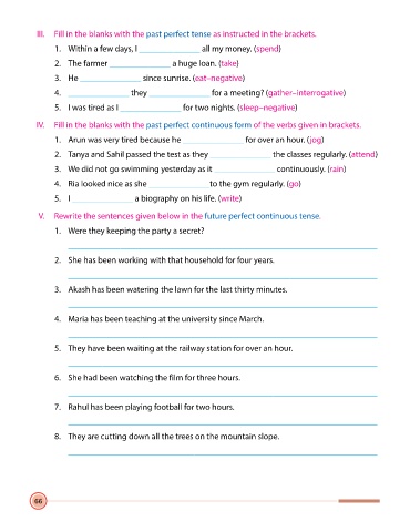 IV. Fill in the blanks with the past perfect continuous form of the verbs given in brackets.