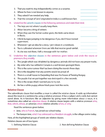 IV. Underline the adjective clauses in the sentences given below and circle the nouns or