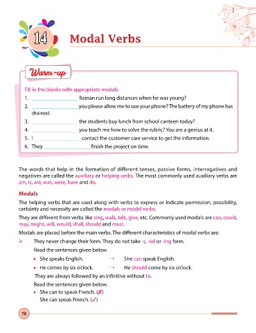 Modals are placed before the main verbs. The different characteristics of modal verbs are:
